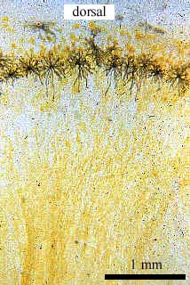 Note the arrangement of big melanophores of usual (dermal) type in the dorsal part.